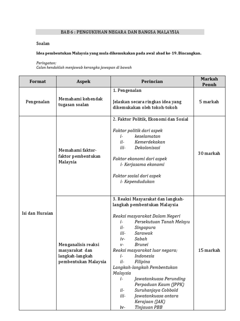 Pembinaan Negara dan Bangsa Malaysia Contoh Soalan Cadangan Jawapan dan Nota. Sebelum peperiksaan tema umum akan diedarkan kepada pelajar supaya anda dapat mencari dan. Sejarah kertas 3 bab 6.